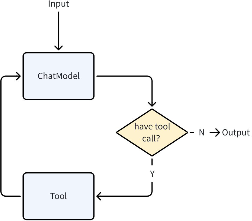 - It sends the tool result back to ChatModel (Observation), then starts a new loop until the model decides no tool is needed and stops