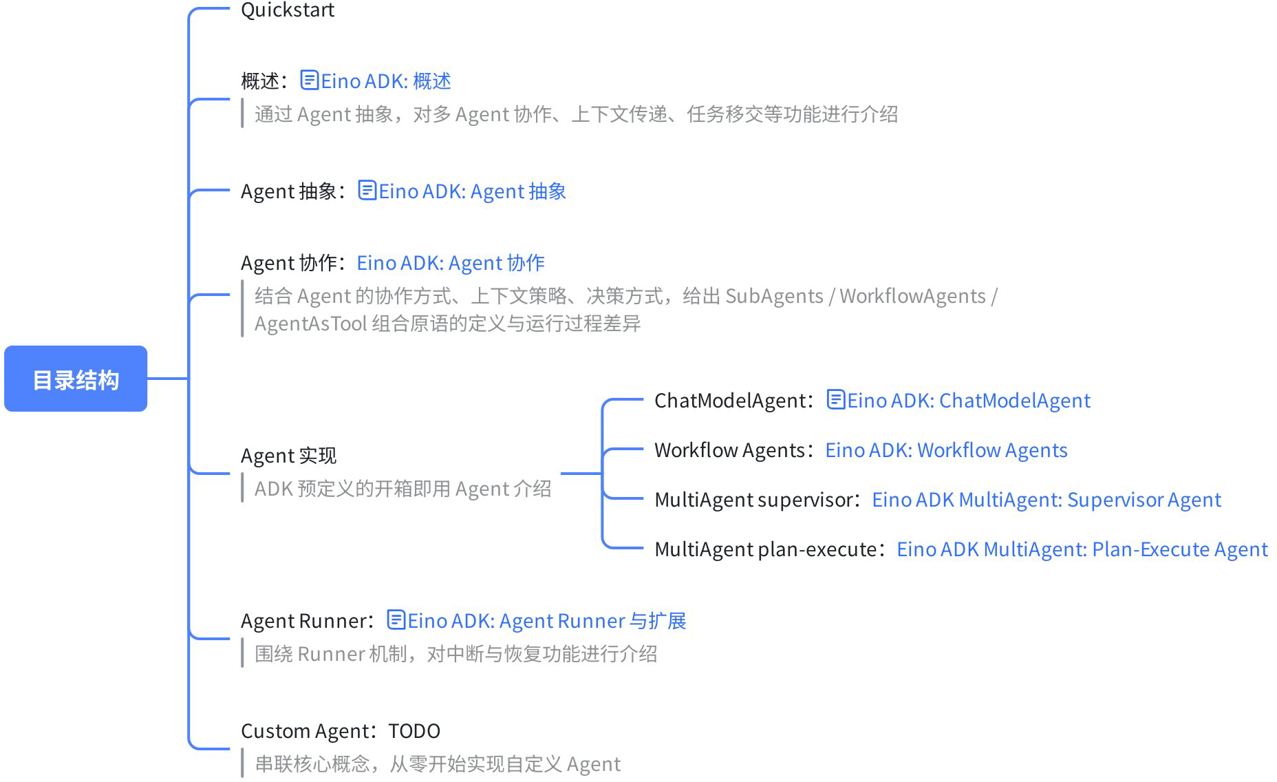 The following articles will dive deep into ADK core concepts to help you understand how Eino ADK works and use it more effectively: